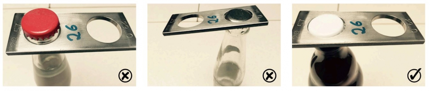 - Is the opening too large, and does the plate fall over the bottleneck? This means that the crown cap has been over-crimped. This risks damaging the bottle and causing rust and sealing problems.